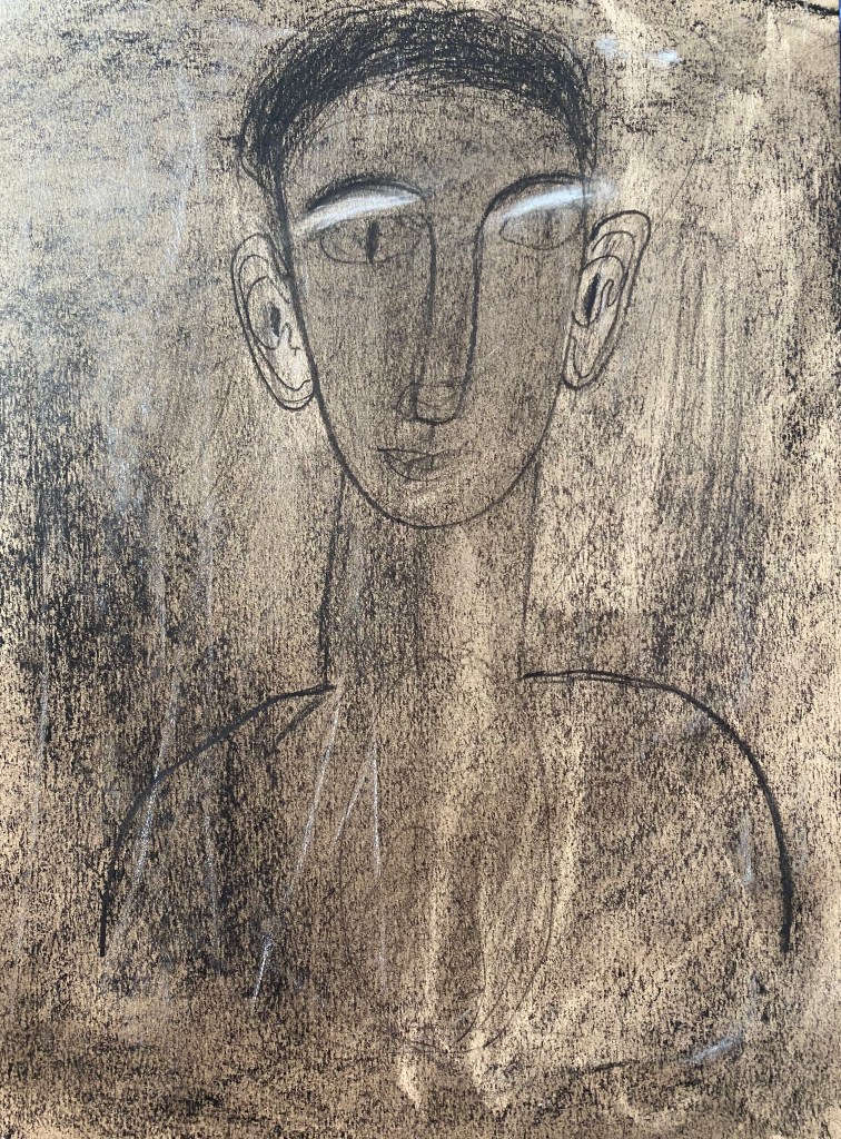 This is a charcoal drawing of myself. My favorite part is the ears. I think my teacher said it was in the style of Expressionism.